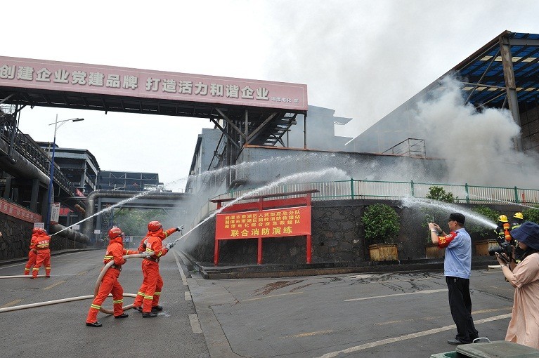 为了检验这13天的训练成果,5月27日下午3点,雨湖消防救援大队、区人武部应急分队、公司应急救援队共60余人在鹤岭分公司开展联合消防演练。区人武部部长龚政军、区应急管理局局长丁书炎、区消防救援大队副大队长苏礼军及鹤岭分公司领导全程观摩指导。随着预先准备好的火点被点燃后,公司应急救援队迅速进入状态,按照各个小组的分工火速跑往火点进行灭火,整体动作干净利落。在雨湖消防救援大队、区人武部应急分队、公司应急救援队救援的默契配合下,成功扑灭火源,救出被困伤员。演练结束后,公司综合应急救援队的表现达到了预期效果,得到现场领导的充分肯定。
