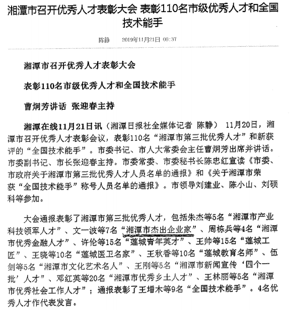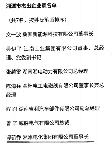 湘潭电化集团有限公司董事长谭新乔同志入榜湘潭市杰出企业家名单
