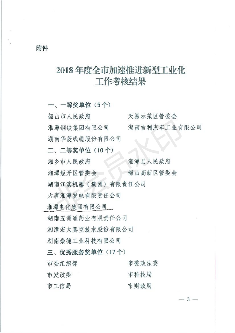 湘潭市人民政府办公室关于2018年度全市加速推进新型工业化工作考核情况的通报